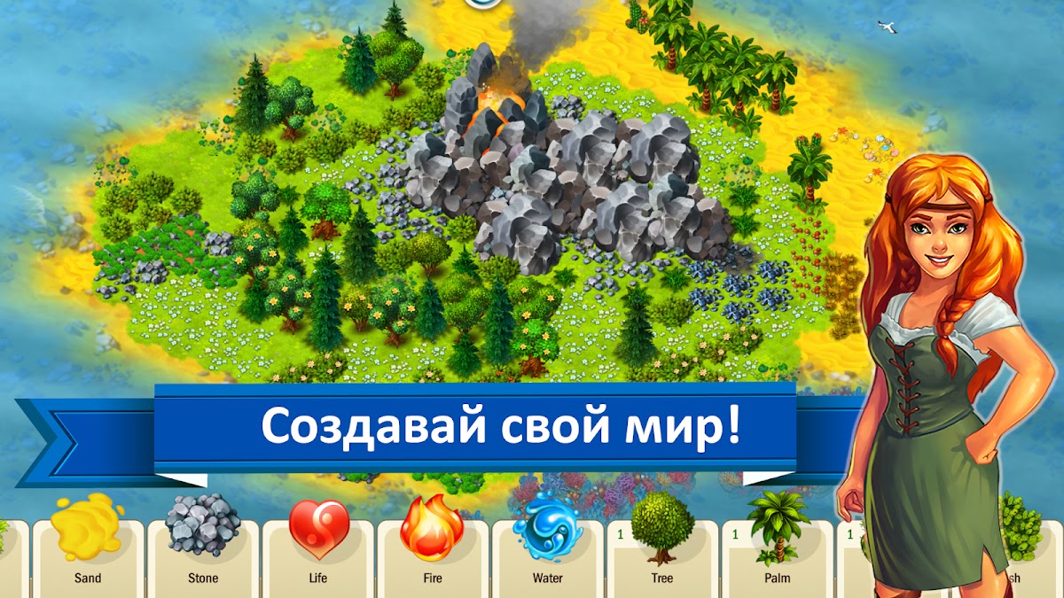 Ты легендарный строитель миров и в твоих руках вся таинственная мощь древней алхимии. Как бог и повелитель нового мира, используй силы природы, чтобы отделить землю от воды и начать эволюцию. Создавай новые земли, горы и леса, строй дома, фермы и мастерские, открывай новые технологии. Начни с небольшого шахтерского поселка с парой шахт и лесопилкой. Преврати его в процветающий город, окруженный густыми лесами, золотыми полями и полноводными реками.