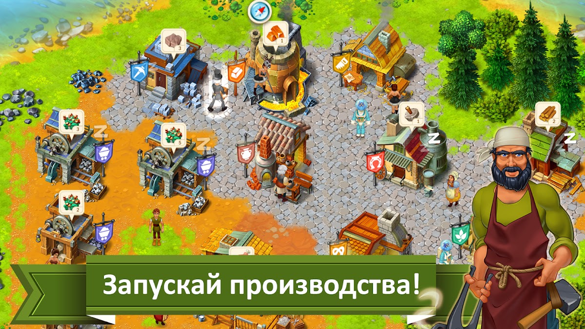 * Строительство и улучшение зданий: от хижин до каменных дворцов, от примитивных мастерских до настоящих фабрик!