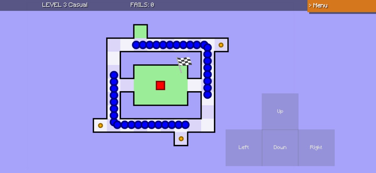 Используйте клавиши со стрелками, чтобы переместить красный квадрат через лабиринт из шаров в конечную зону. Вам нужно избегать синих шаров, собирая все желтые шары. Удачи. Она вам понадобится!