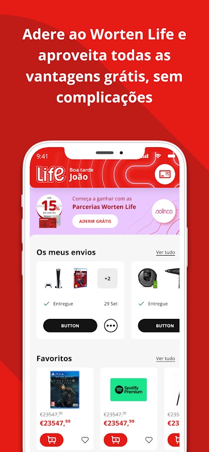 Носите карту Worten Life всегда с собой на смартфоне и пользуйтесь такими преимуществами, как: персонализированное обслуживание; эксклюзивные скидки; увеличенный срок возврата с 15 до 30 дней; доступ к эксклюзивным конкурсам; онлайн-доступ к истории покупок и многое другое.