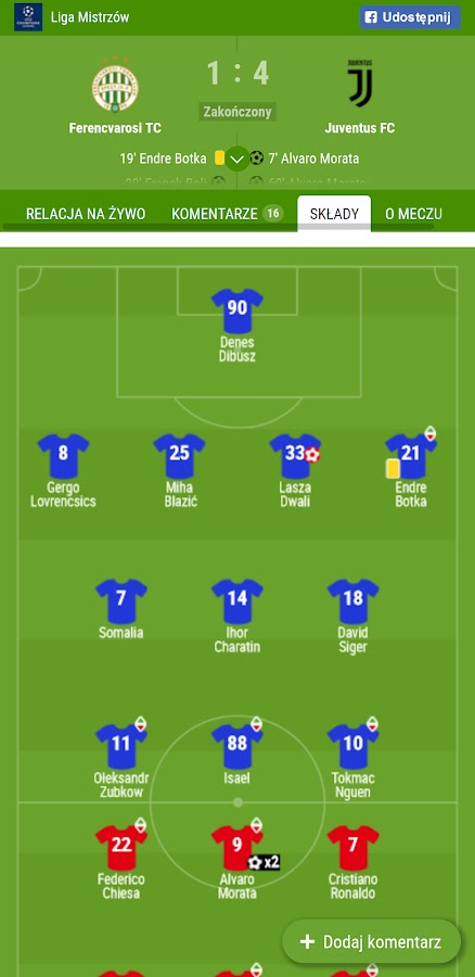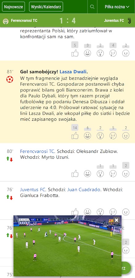 — Футбол (Экстракласа, I лига, II лига, III лига, футзал, Кубок Польши, Лига чемпионов, Лига Европы и другие)