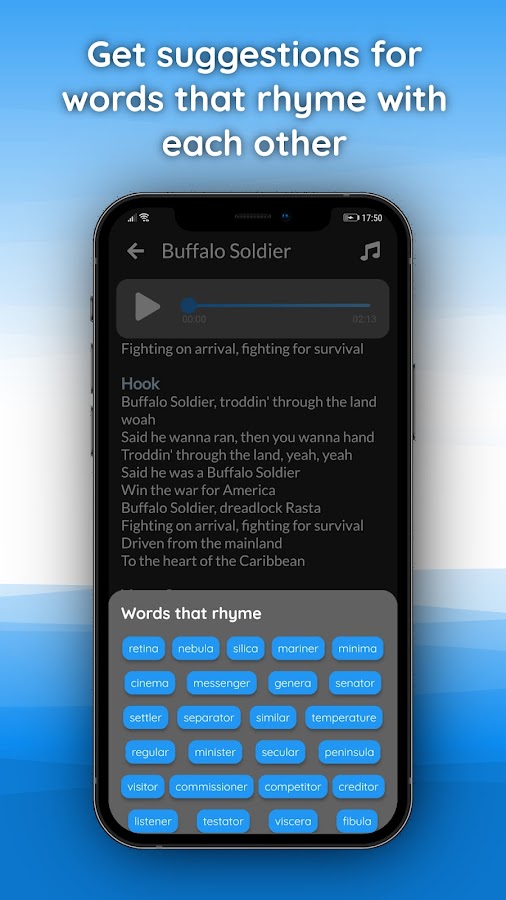 — Находите рифмы: находите подходящие рифмы, чтобы улучшить и вдохновить свои тексты.