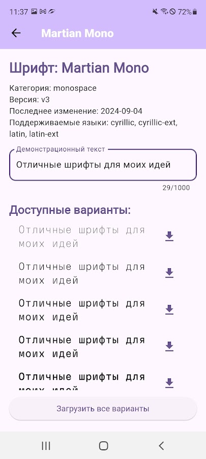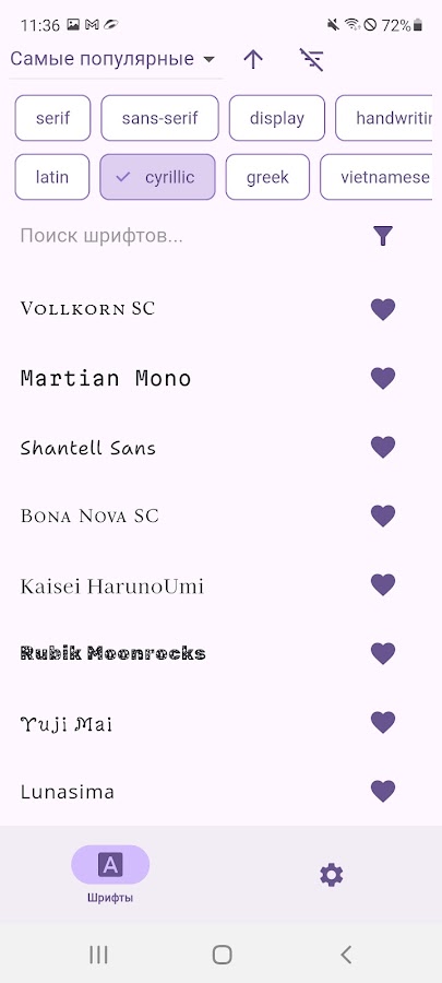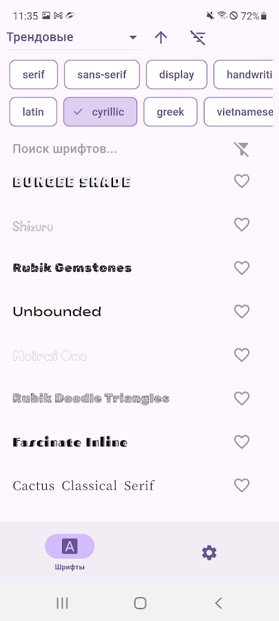 2) Выбери шрифт из представленных. Вам будет доступно 35 стильных шрифтов.