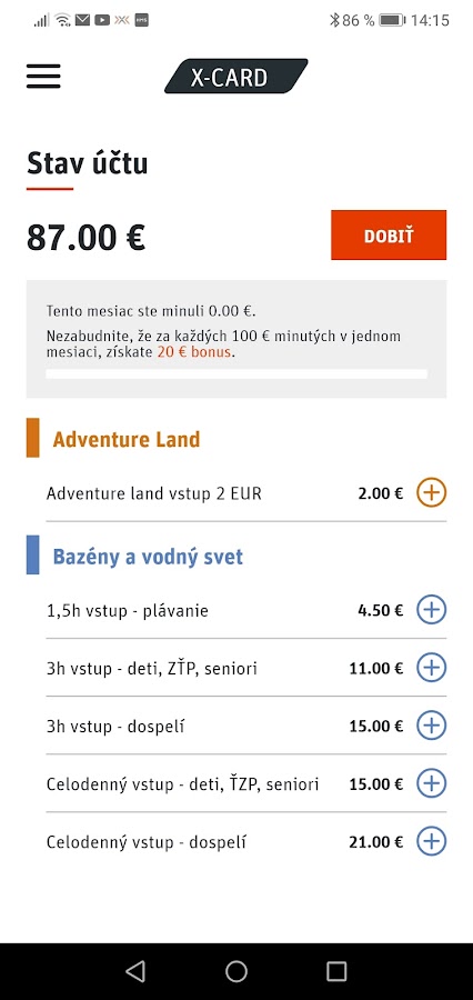 С помощью X-CARD можно расплачиваться по всему курорту. Если вы пройдете 100 евро в течение одного месяца, вы получите бонус в размере 20 евро и его кратную сумму в начале следующего месяца.