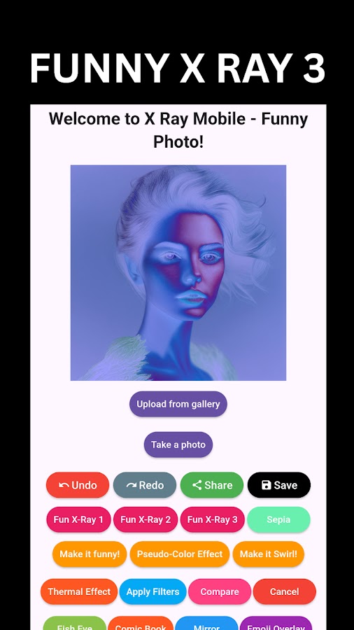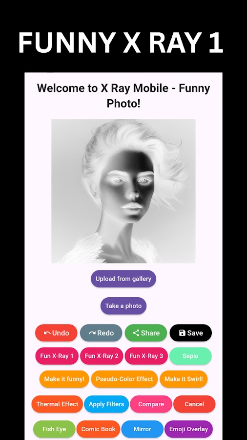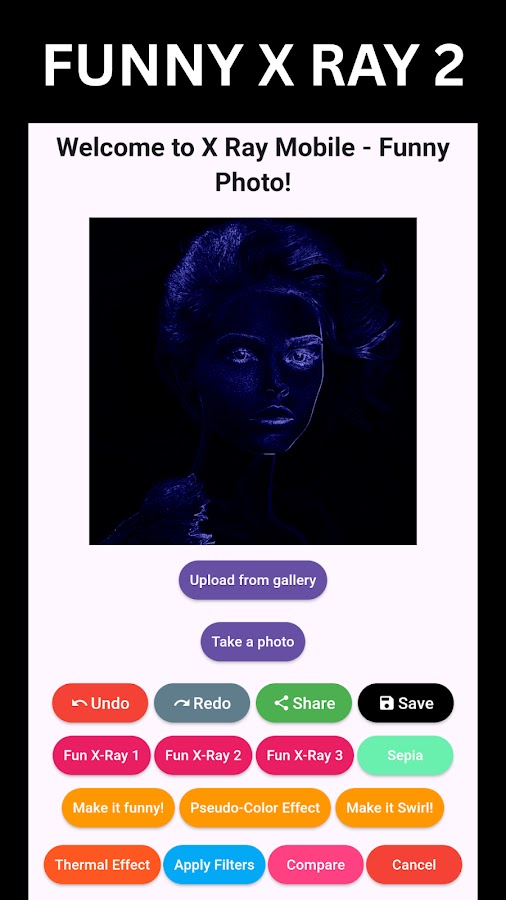 Body Scan x ray scan v3.0 — это универсальное приложение с эффектами камеры, в котором используются специальные фильтры для создания рентгеновских, тепловых, вихревых, псевдоцветных и юмористических эффектов на ваших мобильных фотографиях. Сделайте обычное необычным одним касанием.