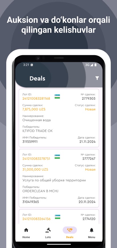 The Xarid mobile application, developed by the “Uzbek Commodity Exchange” JSC (UZEX), is designed to facilitate public procurement processes. With its advanced features, the application enables transparent, efficient, and swift interactions between government purchasers and suppliers, ensuring a seamless procurement experience.