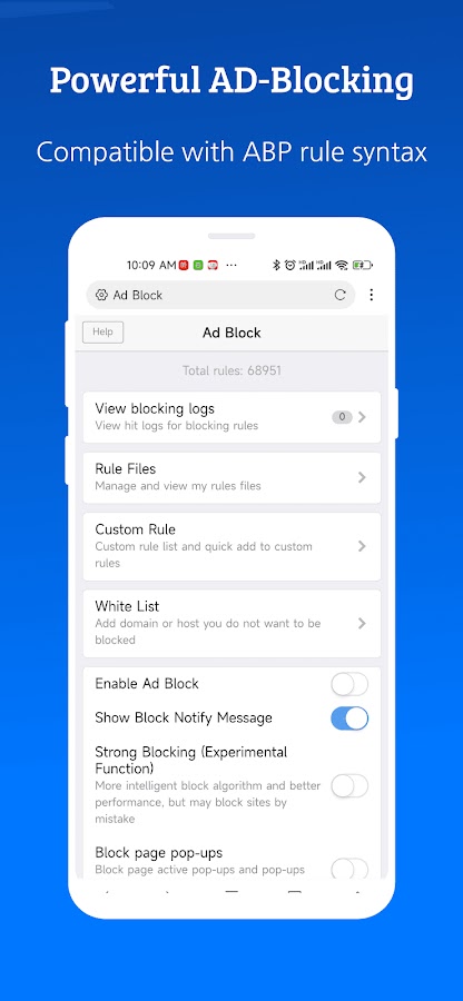 Супер способность блокировать рекламу, помогая вам удалить 80% вредоносной рекламы. Поддержка импорта и подписки на сторонние правила блокировки.