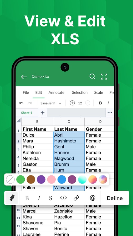 Программа просмотра XLSX: функция приложения просмотра файлов XLS и параметры форматирования упрощают чтение и использование книги. В программе просмотра XLSX: приложение просмотра файлов XLS все функции и форматы формул диаграмм и таблиц работают одинаково для всех устройств. Вы можете просматривать свой XLS-файл с любого устройства и создавать электронные таблицы, легко дублировать, скрывать и отображать их с помощью лучшей программы для чтения документов. Document Зритель позволяет создавать диаграммы и таблицы в соответствии с вашими конкретными потребностями. Программа просмотра XLSX: приложение для просмотра файлов XLS — это наиболее эффективный офисный инструмент для чтения файлов XLS и связанных файлов, таких как XLSM, XLTM, XLTA, CSV. Получите анализ данных, электронные таблицы и бизнес-функции на своем мобильном телефоне с файлом документа. Вставляйте диаграммы, чтобы оживить ваши данные, и используйте функции анализа данных, такие как добавление меток диаграмм.