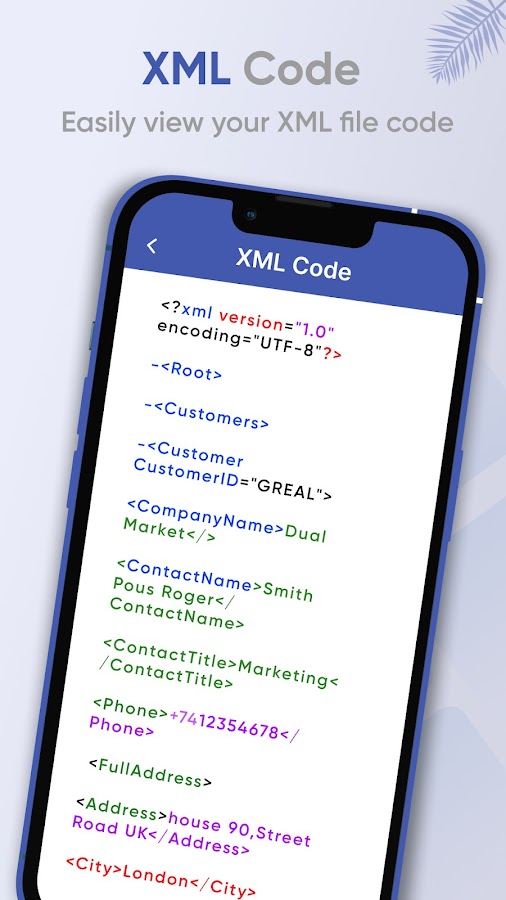 Приложение XML помогает пользователю просматривать, открывать и читать XML-файлы прямо со смартфона. Бесплатная программа просмотра XML для Android позволяет пользователю конвертировать XML-файлы в pdf. xml viewer — средство чтения и открывания позволяет пользователю выбирать любой файл из хранилища устройства и просматривать его напрямую без каких-либо препятствий. Используя программу чтения файлов XML для Android, вам больше не нужен ноутбук или персональный компьютер для открытия файлов XML. Они могут просто загрузить приложение и просмотреть/открыть файл прямо со своего смартфона.