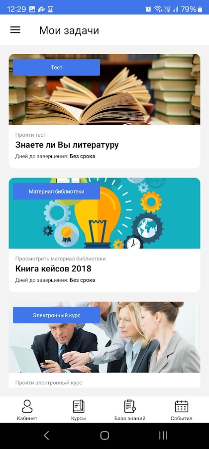 Приложение предназначено для работы с базой знаний, библиотекой документов и учебных материалов размещенной на учебном портале, созданном с помощью системы Websoft HCM. Указав в настройках адрес сервера, свой логин и пароль, пользователь может загрузить в приложение материалы с сервера и работать с ними.