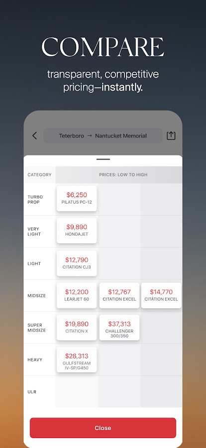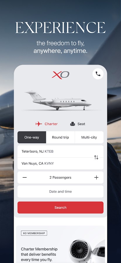 Приложение XO открывает доступ к конкурентоспособным ценам на чартеры частных самолетов по всему миру во всех классах обслуживания. Ознакомьтесь с рейсами в тысячи аэропортов и пунктов назначения по всему миру. Скачайте приложение прямо сейчас и ощутите свободу на кончиках пальцев.