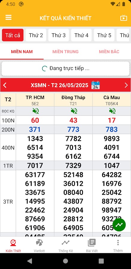 Вторник: Бен Тре (xsbt), Вунгтау (xsvt), Бак Лиеу (xsbl)