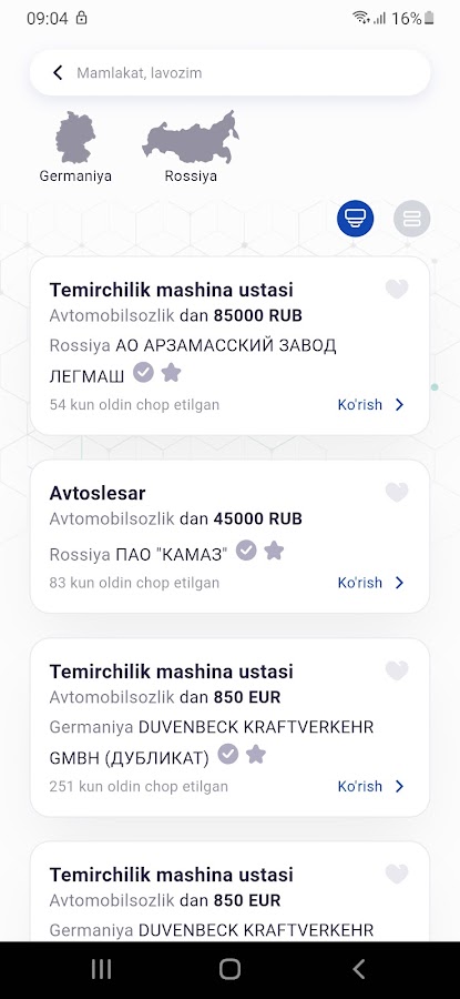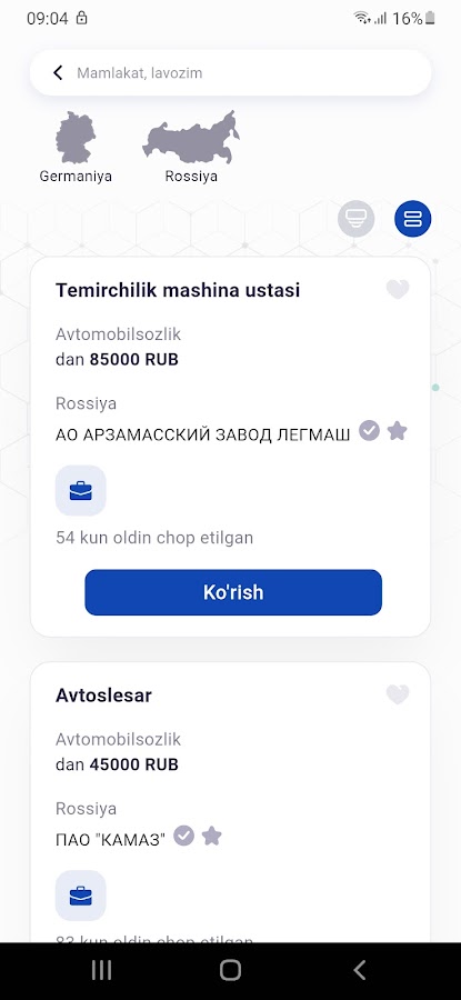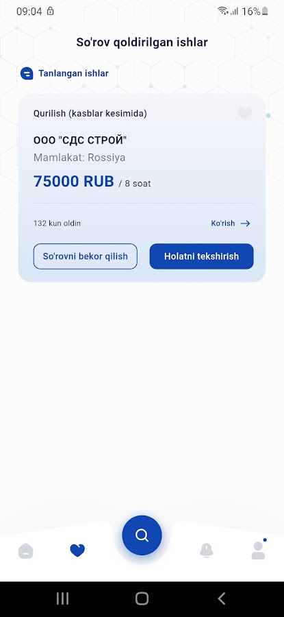 Камбаг’алликни кискартириш ва бандликни таминлаш максадида яратилган ушбу дастур оркали Узбекистон фукаролари юз идентификации (Face ID) йордамида тизимга кириб, э’лон килинган иш джойларига ариза топширишлари мумкин.