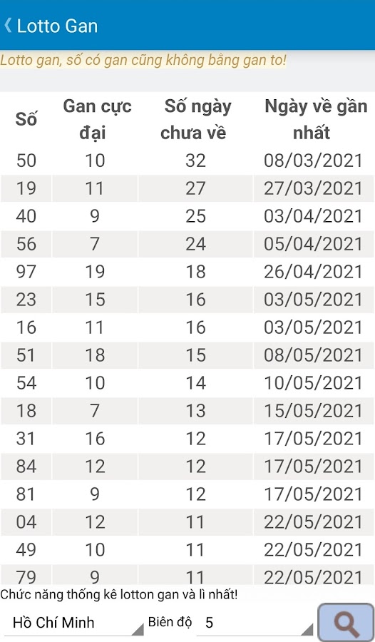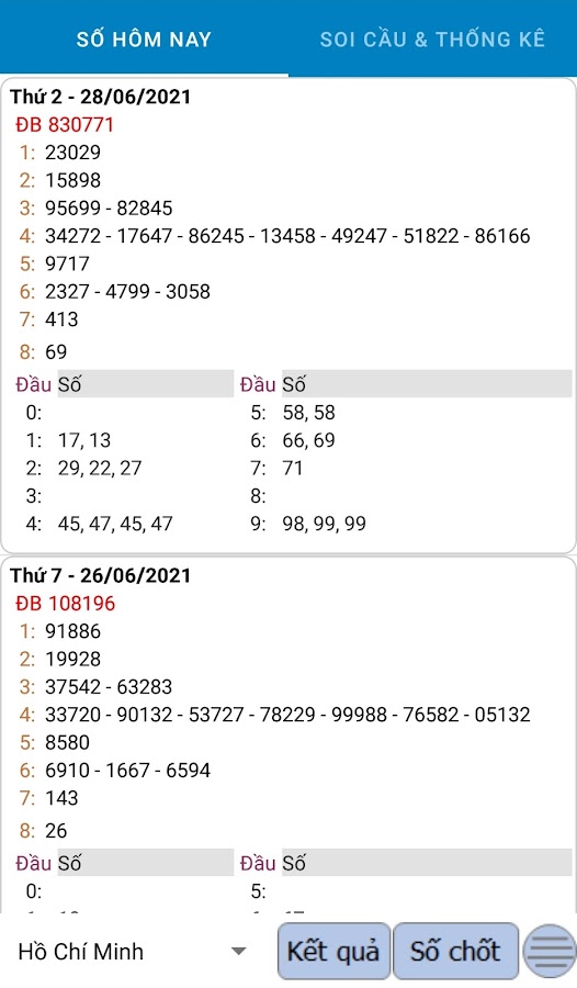 Приложение XSMN предоставляет информацию о результатах лотереи на юге провинций, в том числе: TP. Хошимин, Донг Тап, Камау, Бен Тре, Вунг Тау, Бак Лиу, Донг Най, Кан Тхо, Сок Транг, Тай Нинь, Ан Джианг, Бинь Туан, Винь Лонг, Бинь Зыонг, Тра Винь, Лонг Ан, Бинь Фуок, Хау Занг, Тьен Джианг, Кьен Жанг, Далат. Приложение XSMN предоставляет множество полезных функций, которые нельзя игнорировать: