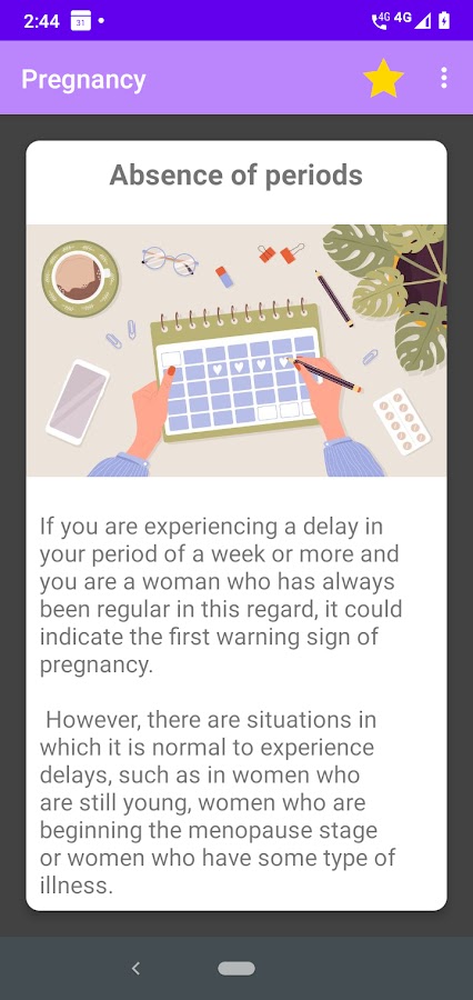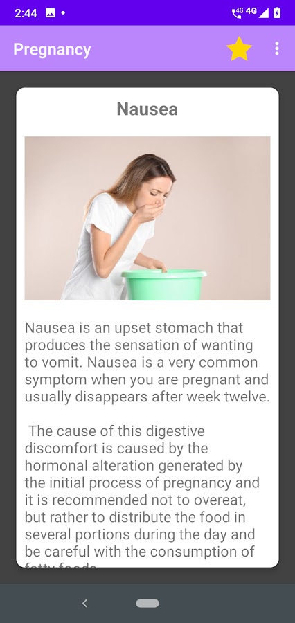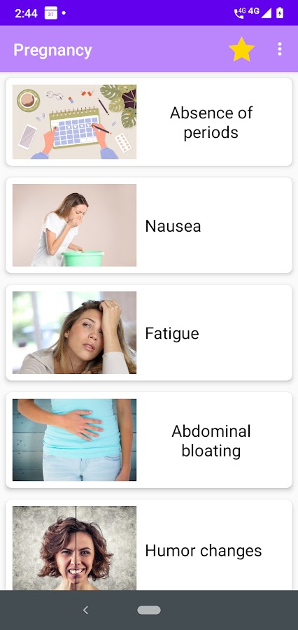 Посмотрите это приложение, чтобы узнать некоторые симптомы, которые появляются у женщины, когда она беременеет.