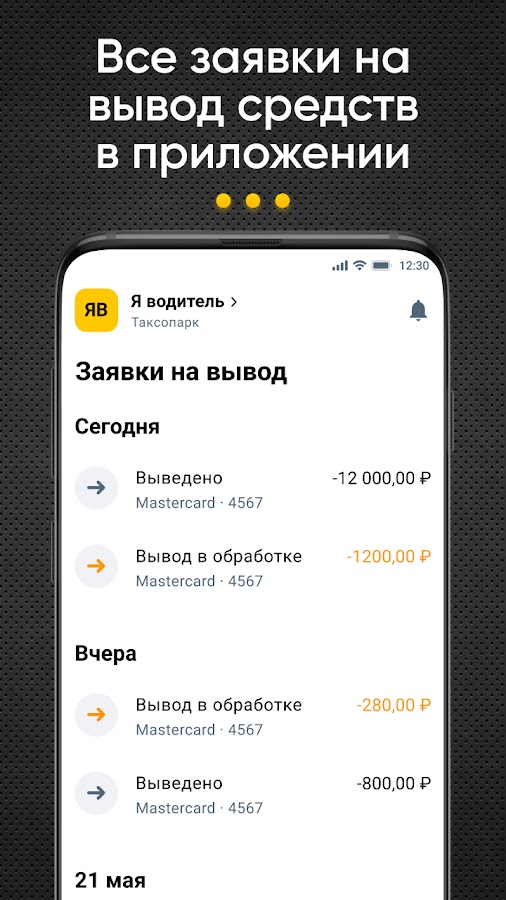 Мы сделали приложение для Вас, чтобы вы могли вывести денежные средства себе на карту в любое время, без запроса менеджеру и ожидания расчётного периода.