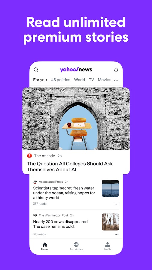 БЕСПЛАТНЫЙ И НЕОГРАНИЧЕННЫЙ ДОСТУП: Yahoo News абсолютно бесплатен. Получите доступ к неограниченному количеству материалов от премиум-издателей, чтобы всегда быть в курсе интересующих вас тем.