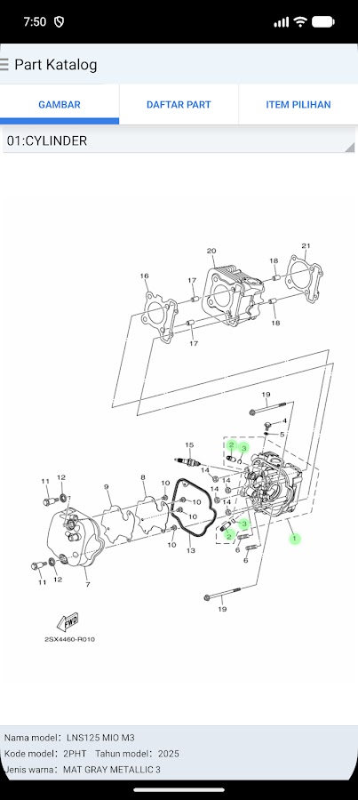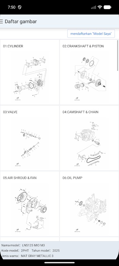 Каталог запчастей для продуктов, продаваемых в Индонезии корпорацией Yamaha Motor Corporation, который можно просмотреть.