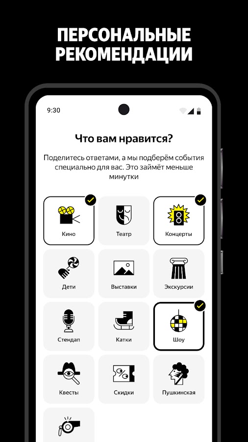 Афиша — это удобный сервис, который помогает планировать досуг и покупать билеты на самые разные мероприятия. В приложении Яндекс Афиша собраны лучшие события в вашем городе и по всей стране.