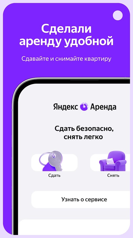 Яндекс Аренда поможет безопасно сдать или снять квартиру. В новом технологичном формате. Аренда жилья стала проще и удобнее. У нас вы легко, безопасно и без лишних хлопот сможете сдать недвижимость, будь то квартира, дом, коттедж, комната или апартаменты. А если вы пока не приобрели свое жилье, то приложение поможет снять дома, комнаты или квартиры максимально быстро и удобно.