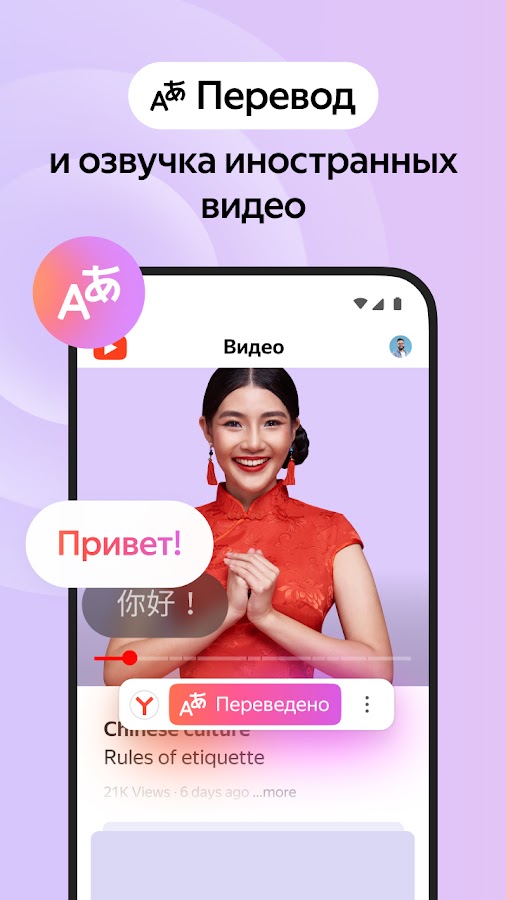 Браузер переводит иностранные видео с восьми языков: английского, испанского, французского, немецкого, итальянского, китайского, корейского и японского.