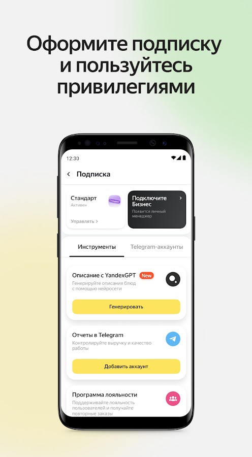Расскажем о вас новой аудитории, не забывая о постоянных клиентах — а поддержку возьмём на себя. В приложении всё готово к работе. Вам останется главное — продолжать вкусно кормить.