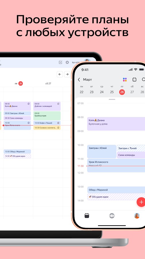 Создавайте встречи, события и расписание прямо на ходу. Яндекс Календарь помогаем сделать день организованным, а планирование — простым и приятным.