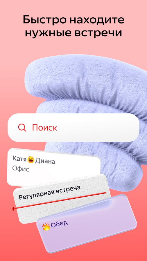 С помощью поисковой строки вы легко найдёте нужные встречи или прикреплённые файлы. Это сэкономит время и поможет быстро ориентироваться в расписании.