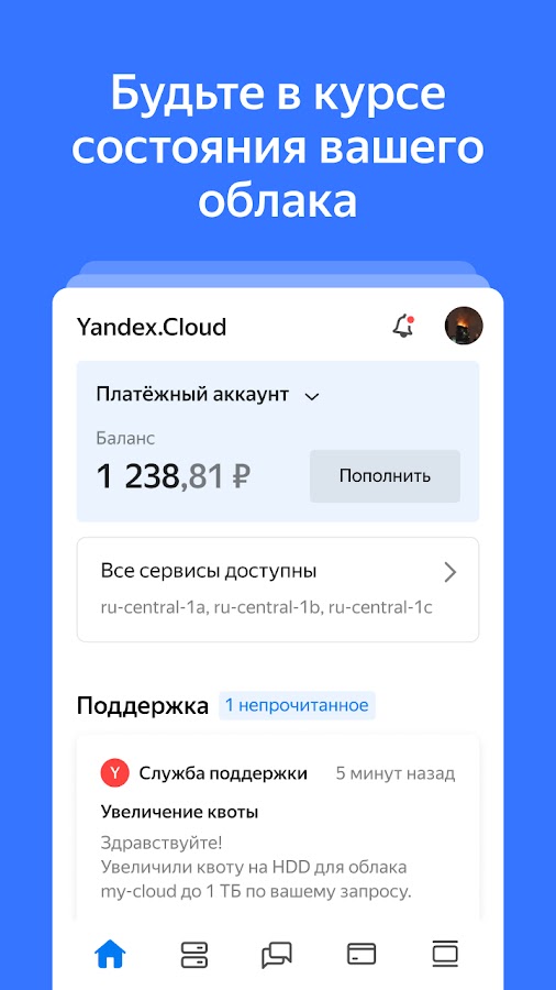 • новости и события: эксперты Yandex Cloud регулярно проводят онлайн- и офлайн-мероприятия, полезные дата-инженерам, архитекторам и разработчикам. Анонсируем их на главном экране приложения;