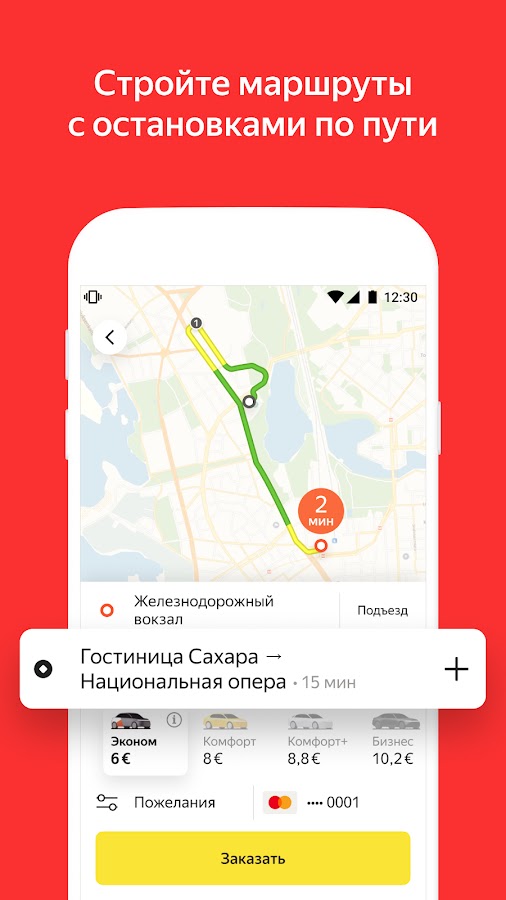 Превратите такси в свой личный городской транспорт. Машина приедет куда скажете и повезёт куда пожелаете — вам не нужно ни парковаться, ни заправляться. Никаких звонков диспетчеру, просто следите за всем на экране с момента заказа и до конца поездки.