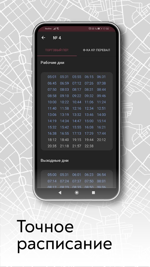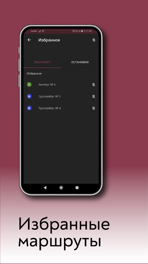 — Смотреть время отправления транспорта от конечных остановочных пунктов;
