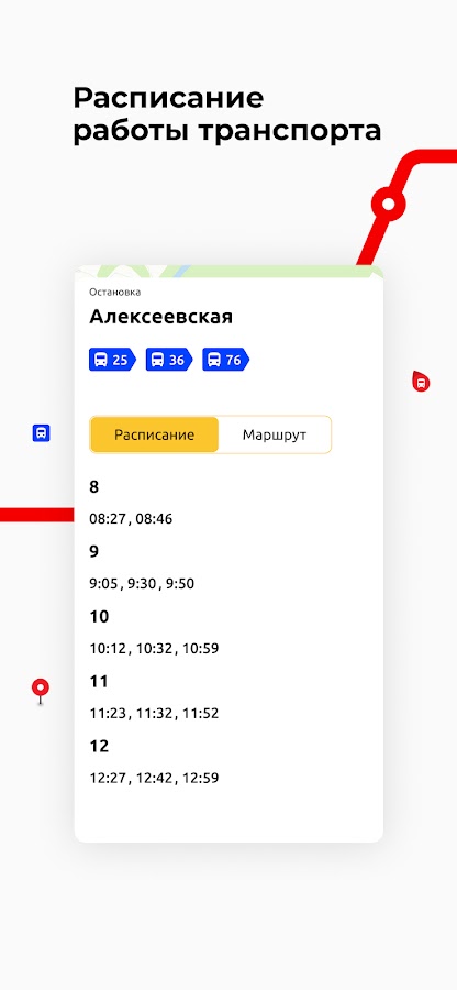 — Узнать расписание и прогноз прибытия на нужную остановку;