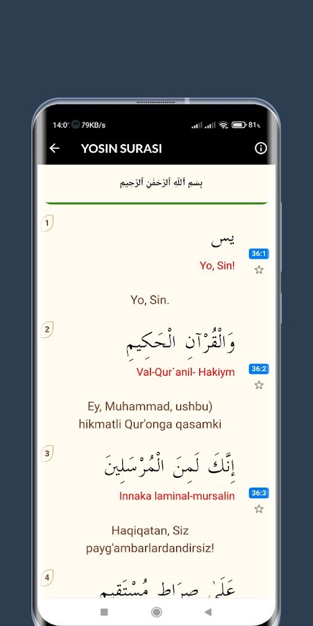 — Ясин сурасин араб ва узбек тилларига таржимаси