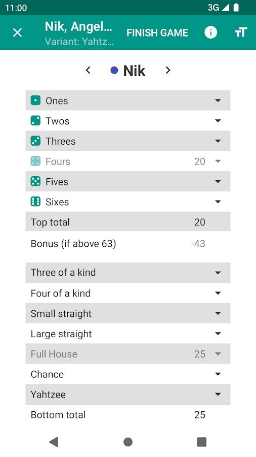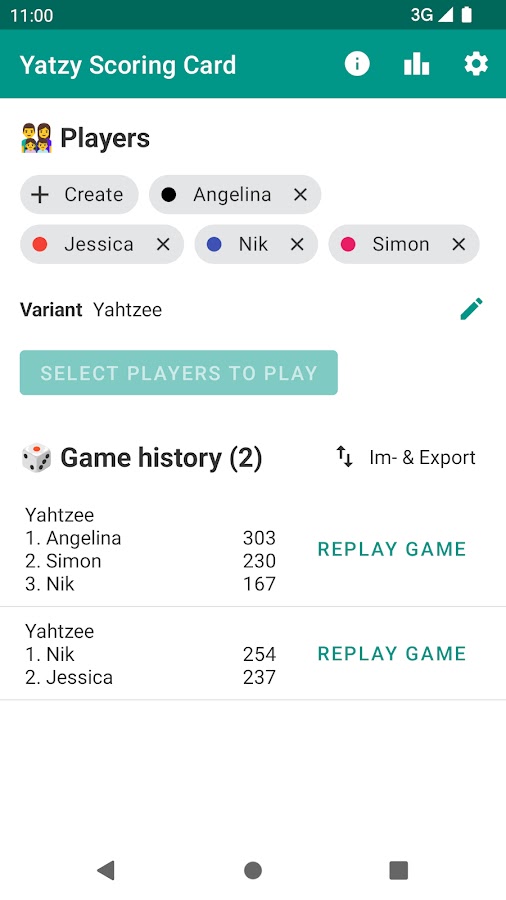 Счетная карта Yatzy позволяет вам отслеживать очки за каждого игрока. Вам больше не понадобятся ручка и бумага, чтобы следить за своими результатами. Используйте ваши кости и начать играть в Yahtzee с друзьями и семьей.