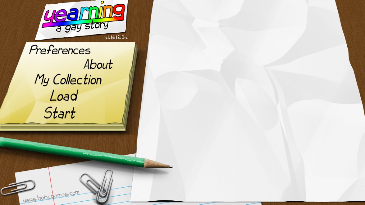 Yearning: A Gay Story (сокращенно YAGS) — визуальный роман о жизни, ориентированный на каминг-аут, с элементами симулятора свиданий (уф), в котором вы играете за гея, начинающего свой первый год обучения в колледже в обычном университете где-то на Среднем Западе США.