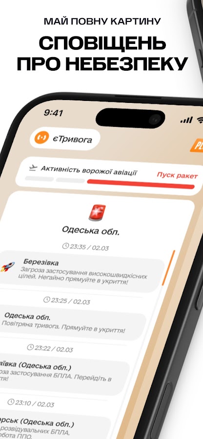 «єТривога» (eAlert) — це волонтерський додаток, який надсилає на ваш телефон сповіщення про загрози у вибраному місті або області України.