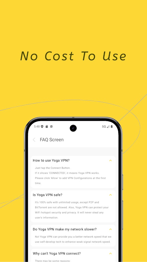 Yoga VPN никогда не будет записывать ваше поведение в Интернете и никогда не будет загружать вашу конфиденциальную информацию!