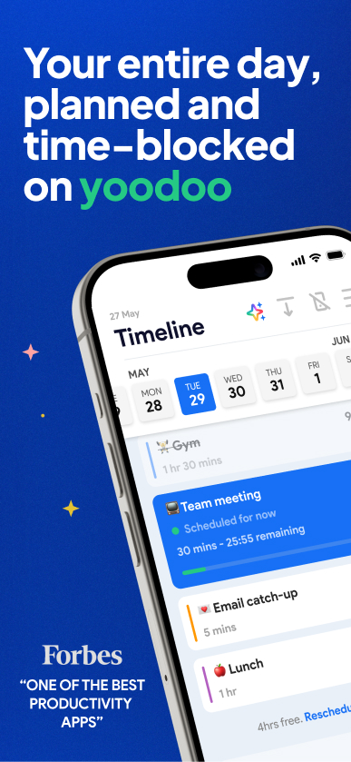 Если традиционные тайм-блоки вам не подходили, Yoodoo — это другое дело: он перестраивает ваше расписание, когда жизнь неизбежно вносит свои коррективы.