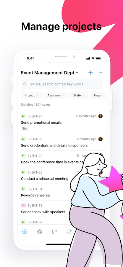 Приложение YouTrack Mobile позволяет вам не отставать от задач, пока вы в пути: