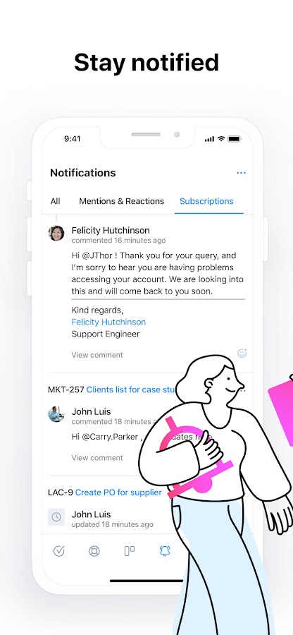 • Оставайтесь на связи благодаря уведомлениям в режиме реального времени о действиях в ваших задачах и проектах.
