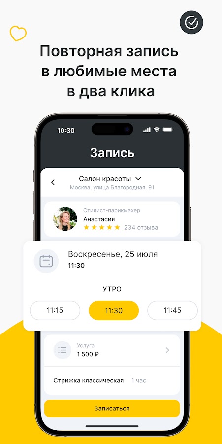 Тратьте меньше минуты на запись — и наслаждайтесь качественными услугами.