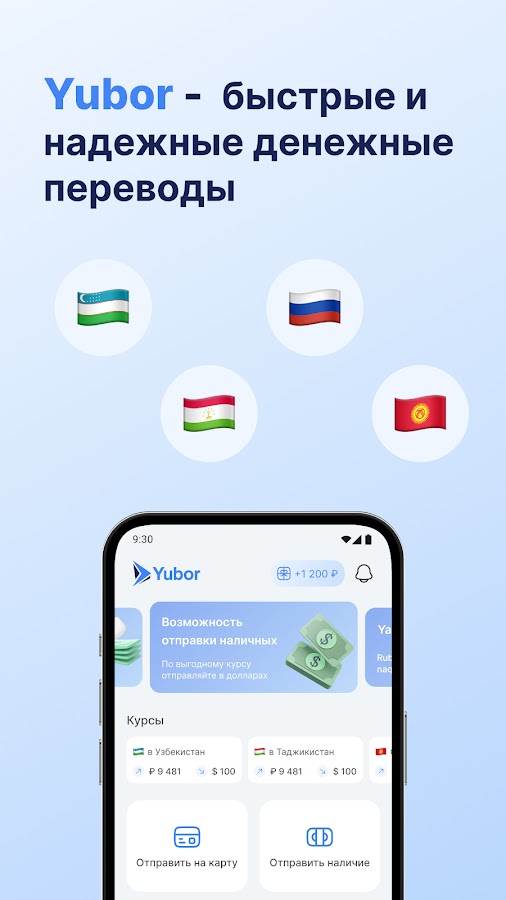 Представляем вам приложение YUBOR — денежные переводы, ваш удобный и безопасный способ отправлять деньги своим родным и близким в Узбекистан, Таджикистан, Киргизстан и Казахстан.