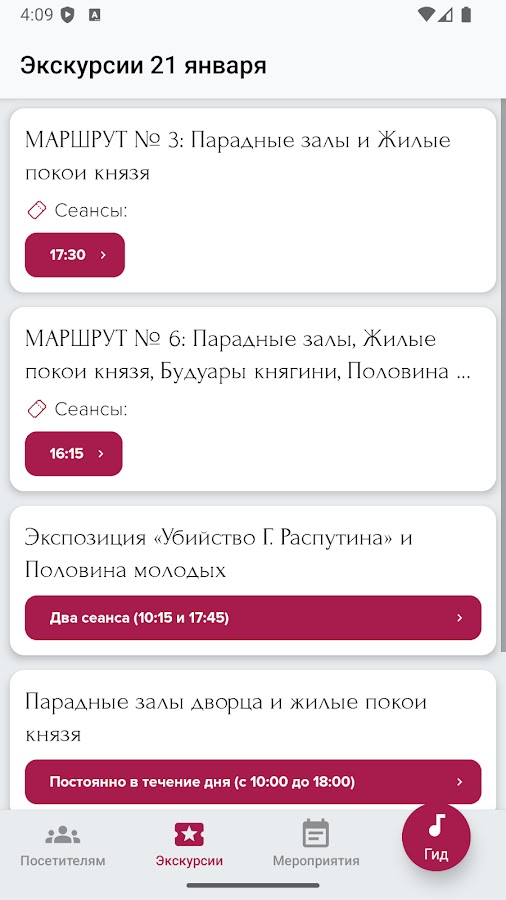 Приложение позволяет любому посетителю, купившему билет на экскурсию, ознакомиться со всей ее экспозицией без сопровождения экскурсовода, но при этом получить исчерпывающую информацию о всём ее содержании.
