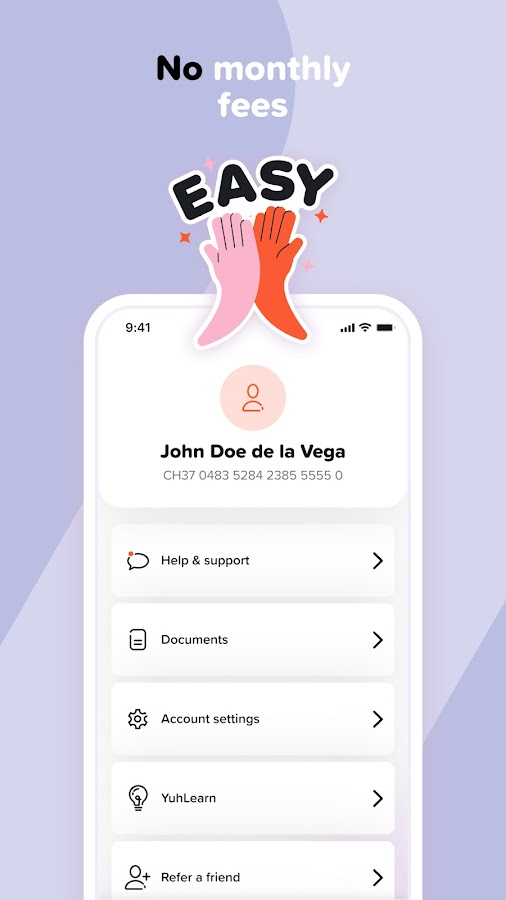 Yuh предоставляет вам бесплатную дебетовую карту Yuh Mastercard, отслеживание движения средств по счету в режиме реального времени и мультивалютный счет. Мы предлагаем прозрачную комиссию за конвертацию валют без скрытых комиссий. Комиссии за управление счетом и оплату картой также остались в прошлом. Зарегистрировавшись в Yuh, вы получите швейцарский счет бесплатно и практически без усилий.