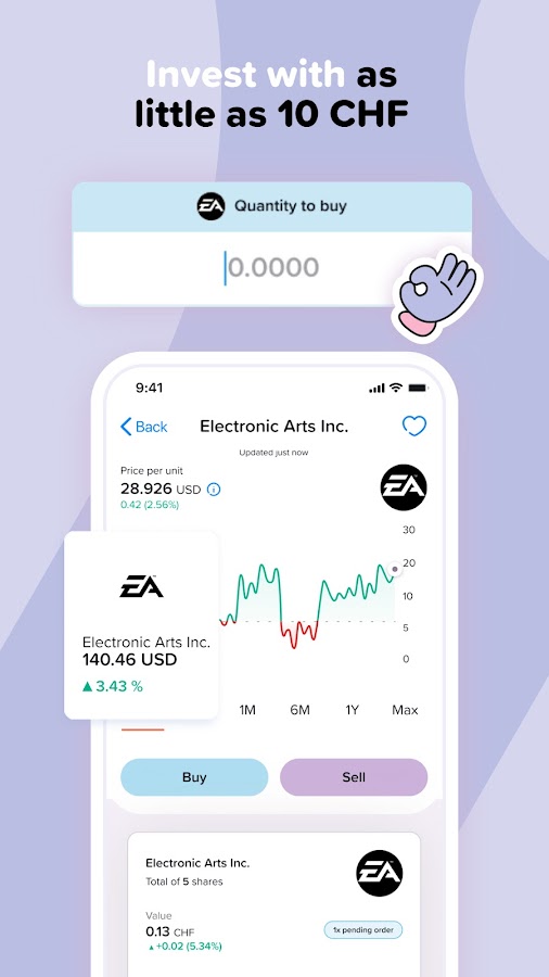 • Покупайте акции, криптовалюту и ETF и начните инвестировать от 10 швейцарских франков.