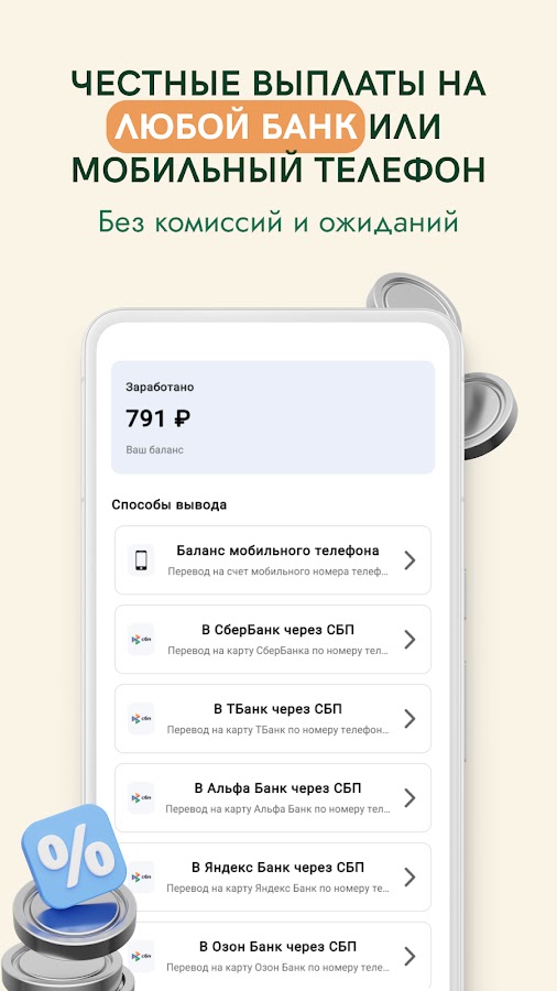 Подработка и заработок денег – теперь в одном приложении. Мы объединили лучшие способы заработка в интернете с выводом денег, чтобы вам было удобно. Заработок с выводом на карту занимает всего несколько минут после достижения минимального порога. Никаких проблем – только вывод денег без вложений и задержек.