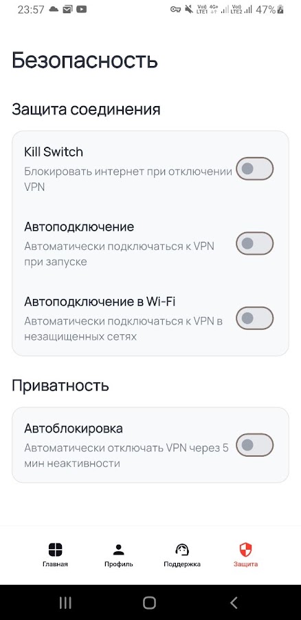 Установите Зайка ВПН: VPN Proxy, чтобы повысить безопасность соединения, защитить персональные данные и пользоваться интернетом с дополнительной приватностью в рамках действующего законодательства.