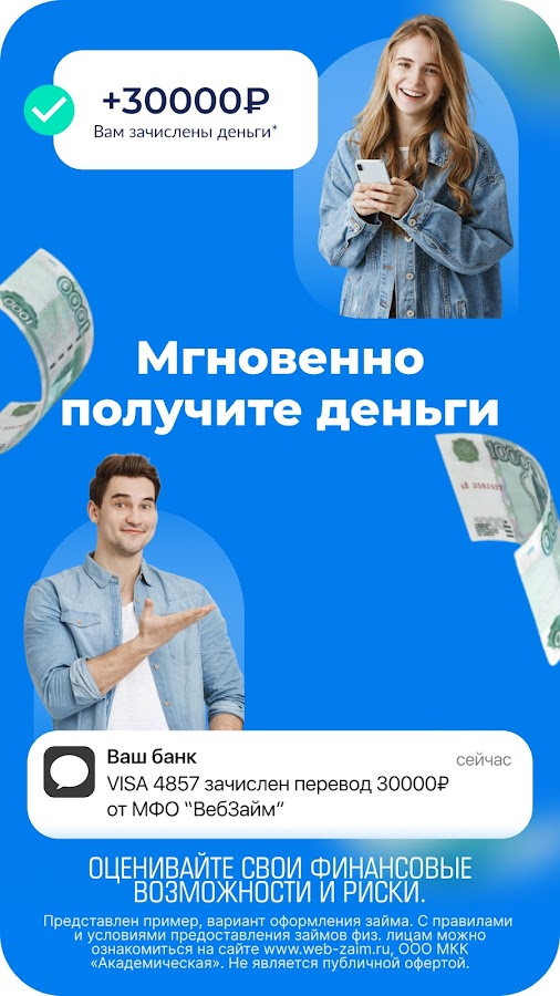 Скачайте приложение Займы онлайн — ВебЗайм для Android бесплатно - последняя версия (2.8.45) уже доступна для установки на ваш телефон или планшет.