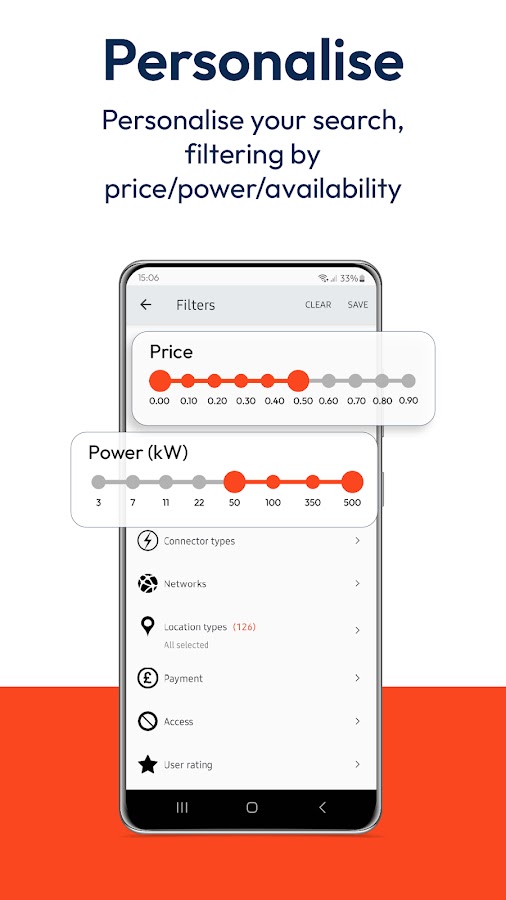 Находите самые дешевые и надежные зарядные станции и избегайте очередей благодаря фильтрам по цене, рейтингу пользователей и наличию нескольких зарядных устройств. Кроме того, смотрите самые новые устройства в вашем районе с помощью фильтра «Новые устройства».