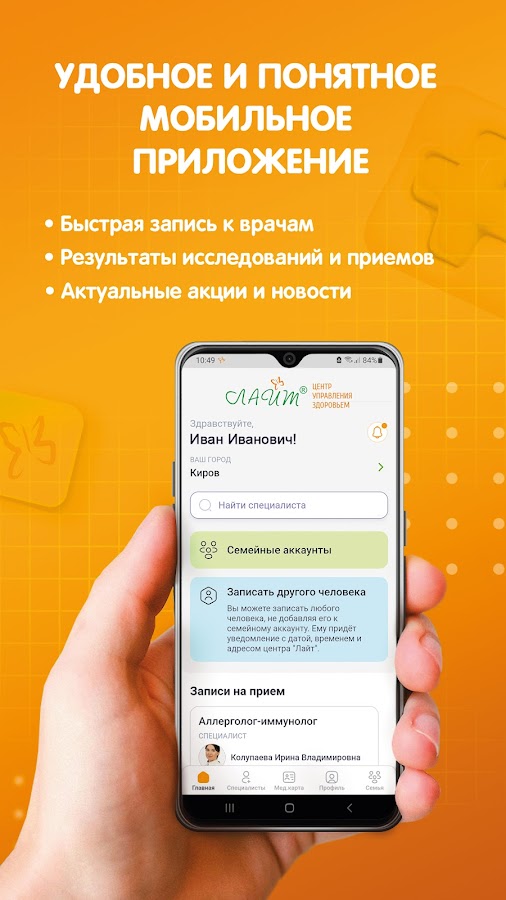 Приложение «Здоровье Лайт» — простой и удобный интерфейс коммуникации с клиникой, а также возможность получать услуги через мобильный телефон.